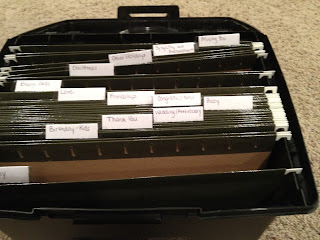 My other little project was this bin filled with greeting cards. I originally had what I thought was a great way to organize them, but obviously it wasn't working.